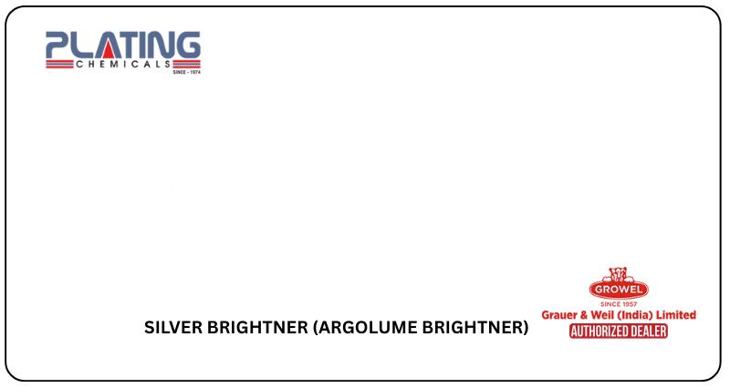 Get flawless silver plating with SILVER BRIGHTNER (ARGOLUME BRIGHTNER) from Plating Chemical, your go-to SILVER BRIGHTNER Growel Authorised dealer in Chennai. It enhances deposit brightness, levels the surface, and ensures uniform, high-gloss results ideal for decorative and functional applications.