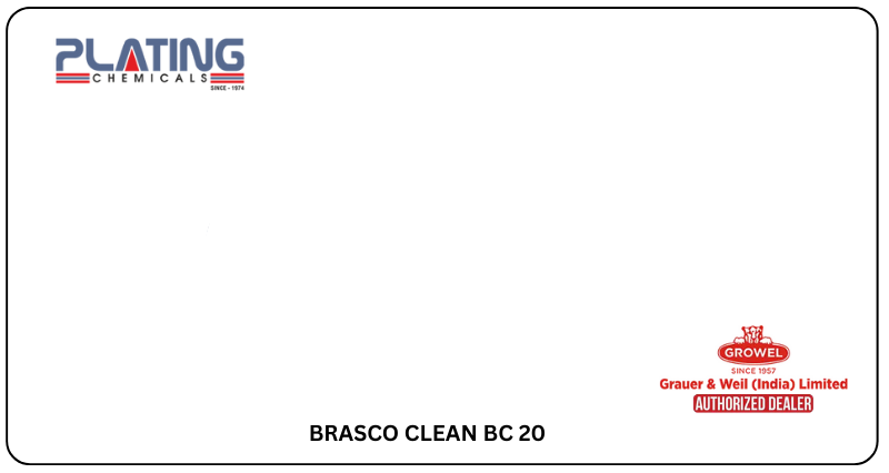 Plating Chemical, your reliable BRASCO CLEAN BC 20 Growel Authorised dealer in Chennai, offers this efficient cleaning solution for brass components. It removes oxides and impurities, preparing surfaces for smooth and consistent plating applications.