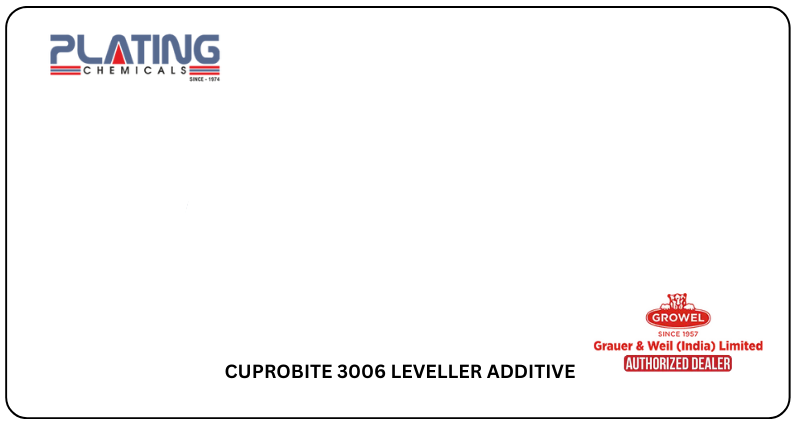 Achieve smooth, level finishes with CUPROBITE 3006 LEVELLER ADDITIVE from Plating Chemical, a trusted CUPROBITE 3006 LEVELLER ADDITIVE Growel Authorised dealer in Chennai. It minimizes roughness, enhances brightness, and ensures consistent thickness in high-speed copper plating systems.