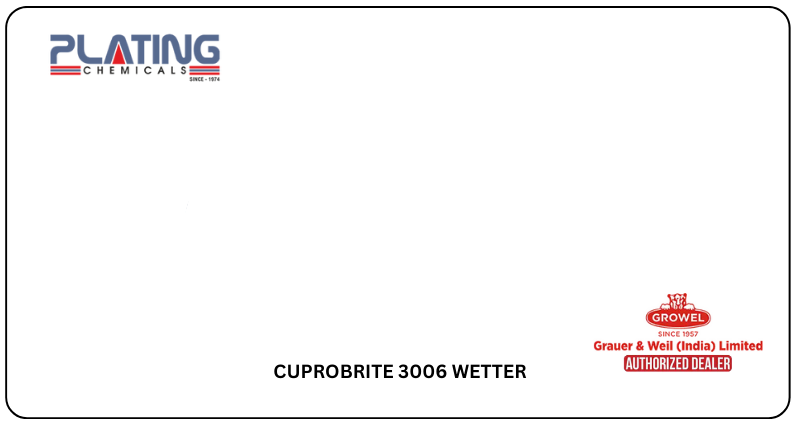 Plating Chemical, a reliable CUPROBRITE 3006 WETTER Growel Authorised dealer in Chennai, supplies this vital component for reducing surface tension in copper baths. It promotes uniform coating, better coverage, and reduced pitting in high-speed plating lines.